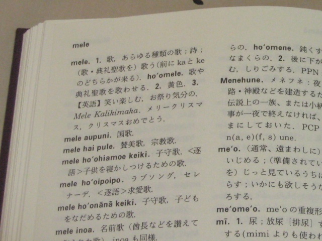 見出し語7,850語の中には人名・地名なども含まれ、フラソングを理解するためにはこの辞書1冊で十分楽しめます。また、ハワイ語の読み(発音)も記載し、多くの文法・用例も挿入。