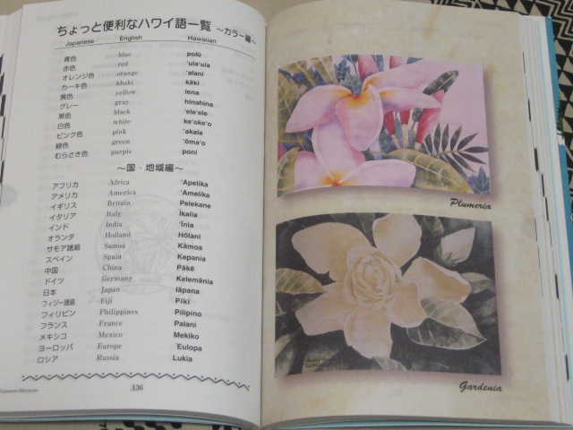 更にハワイ語と日本語の間に、現地でも困らぬよう対応する英語も掲載し、現地での持ち歩きも考慮したハンディサイズ。現地ではもちろん、フラダンスに夢中な方、ハワイをもっと知りたい方、に最適なハワイ語の入門書です。