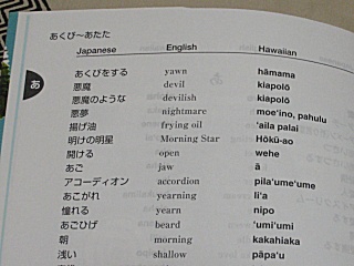 それぞれのイラストにハワイ語のつづり、読み、日本語が書かれています。