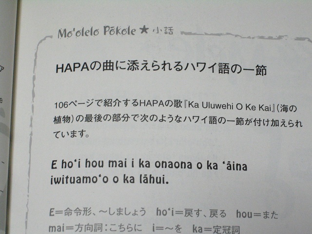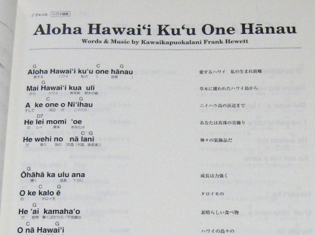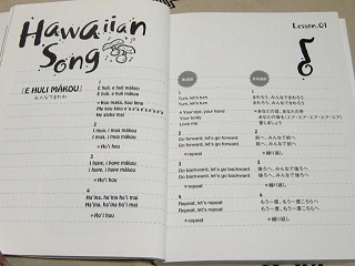 ハワイアンソングの歌詞と英訳、和訳も載っています。